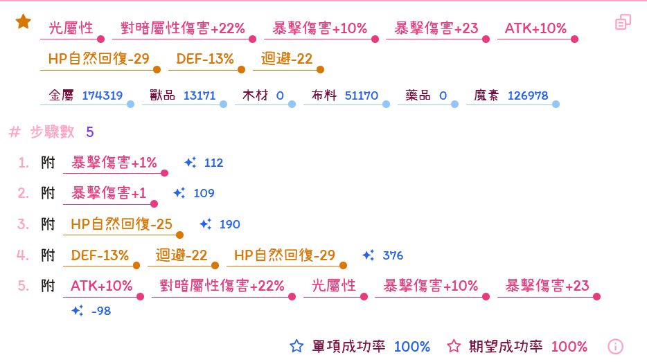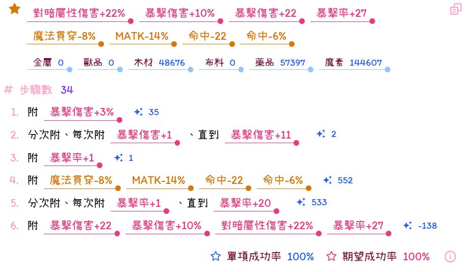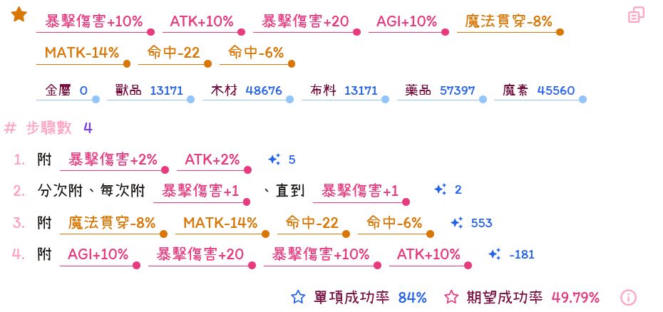附魔公式如下: