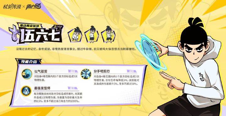 《杖剑传说》官方宣布,与动画《伍六七》的联动活动即将开启,玩家可通过签到及联动活动获取包括伍六七、梅花十三、鸡大保、何大春在内的四位限定伙伴。