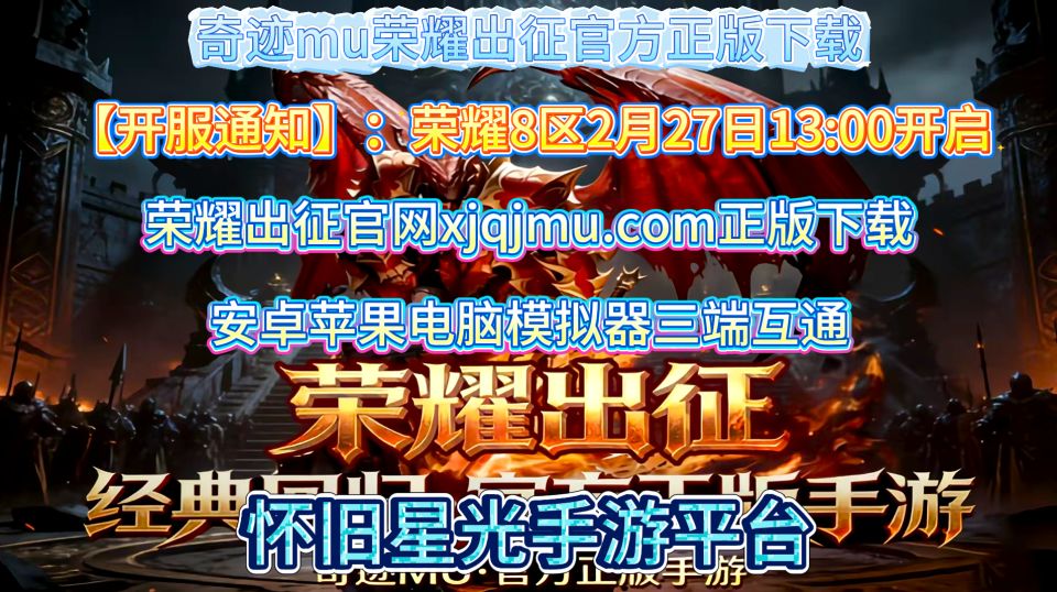 荣耀出征,热血重燃!备受80、90后情怀玩家期待的《奇迹MU:荣耀出征》“荣耀8区”,将于2月27日13:00正式开启!作为官方正版授权、安徽游昕代理运营、怀旧星光手游平台宣发的复古奇迹IP续作,游戏以端游1.03H版本为核心蓝本,完美复刻了勇者大陆、仙踪林等承载无数青春记忆的魔幻地标,坚守“装备全靠刷、公平竞技、自由交易”的经典设定,让每一位玩家都能重温当年的热血与感动。在游戏五大职业中,弓箭手凭借灵动的身法、超远的射程、均衡的战力以及全场景适配的特性,成为新老玩家的首选职业。《荣耀出征》已正式开启全平台公测,请前往荣耀出征手游官网https://www.xjqjmu.com下载注册游戏!《荣耀出征》怀旧版经典归来,由”怀旧星光手游“负责游戏宣传攻略资讯分享礼包码发放!精彩资讯、攻略礼包及安卓苹果下载百度搜怀旧星光手游或关注订阅号怀旧星光手游!《荣耀出征》手游正版宣传平台怀旧星光手游官网https://www.hjsyz.com官方合作平台