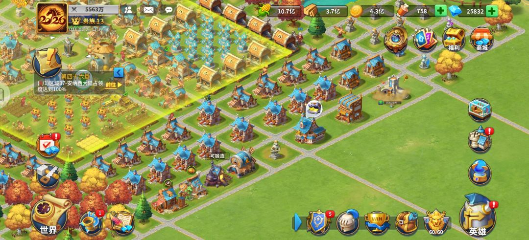 对称,好看,不乱,城堡满级45。生产BUF基本都照顾到,金矿天生残缺。