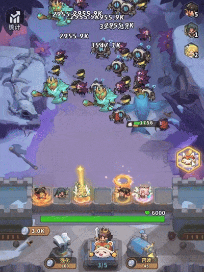【喜从天降】:鸿运团团空降造成击退和伤害,随后在场上弹跳砸击数次,每次落地对范围内敌人造成伤害并减速。
