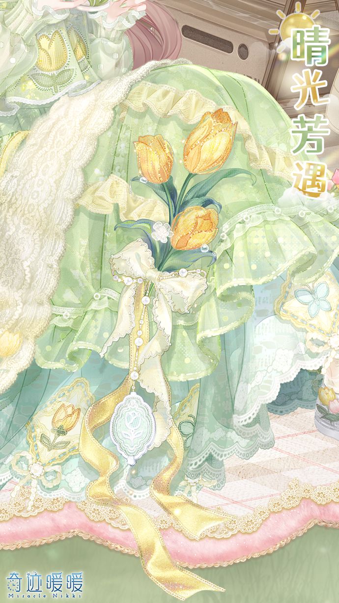 【晴光芳遇】含正常姿势与特殊姿势,全新妆容“笑语盈盈”,特殊姿势上衣“春野来信”,特殊姿势下装“晴光芳遇”、“晴光邂逅”,精美可移动摆件“小小天地”、“营趣拾光”、“织春花毯”、“晴光烂漫”。