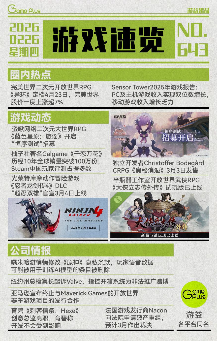 游戏行业值得关注的信息-0226