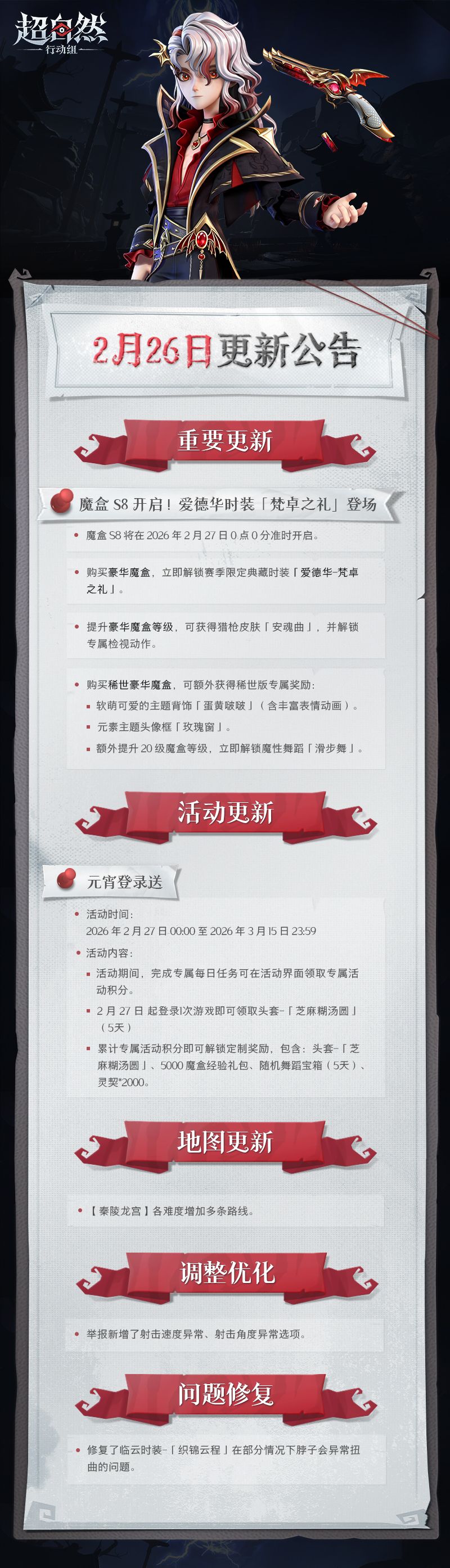 2月26日更新——魔盒S8即将开启,爱德华时装「梵卓之礼」登场!