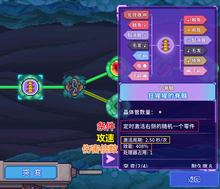 兼容端口:每个器官有适配端口,端口不对装不上,优先选「多端口兼容」的,通用性强。端口搭配错,可能导致技能放不出来,或者输出不是最大化!处理器容量:初期只有6-8容量,每个器官占1-2容量,优先选“低占用高收益”的(比如脊髓,占1容量还能稳定触发输出)。