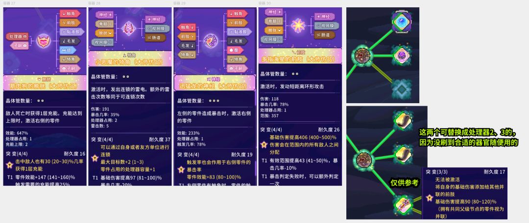 前言:这游戏的核心就是「器官搭配」,别瞎装!记住两个原则,三个重点。玩法及搭配有很多,本帖只分享经验,适合萌新看。