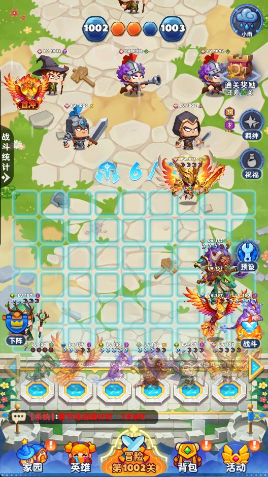 12、重头戏来了1000关是个难点,但是也是有技巧的一下整容如下图,这时候用种族招募券取长补短,把没到月亮的英雄招募到月亮,打到这里我剩余47个种族招募券,先知和精灵龙没到月亮就抽壁垒,我脸比较黑,差一点精灵龙太阳了,会更稳。