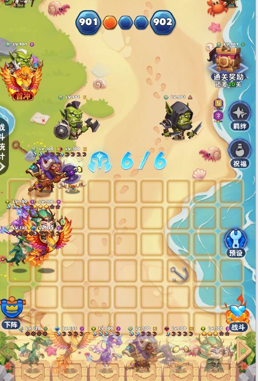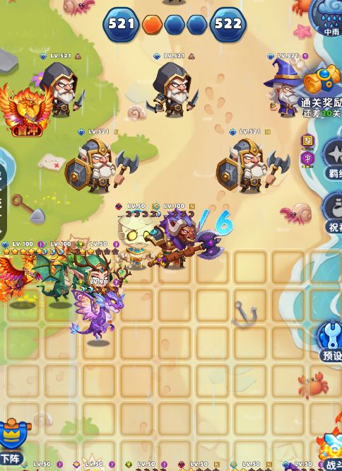3、30关过关自行把下方未上阵整容上阵且升级。