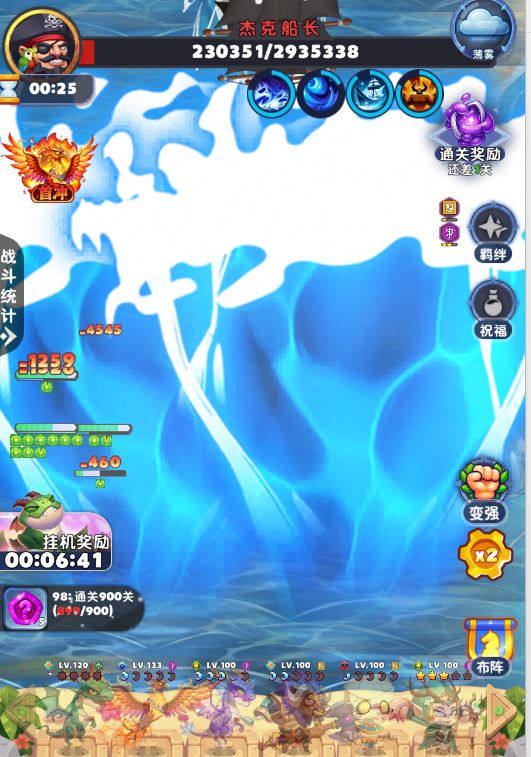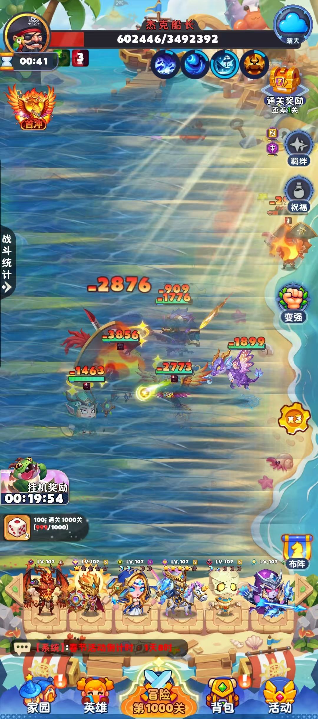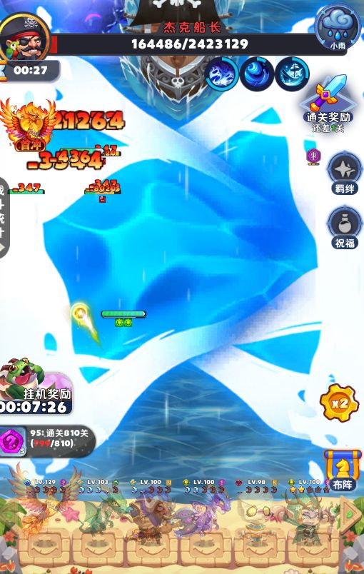 注意概率会翻车,时间不会很长,通关1000时候我甚至没过200级,尴尬了不能升城堡,打得太快了。