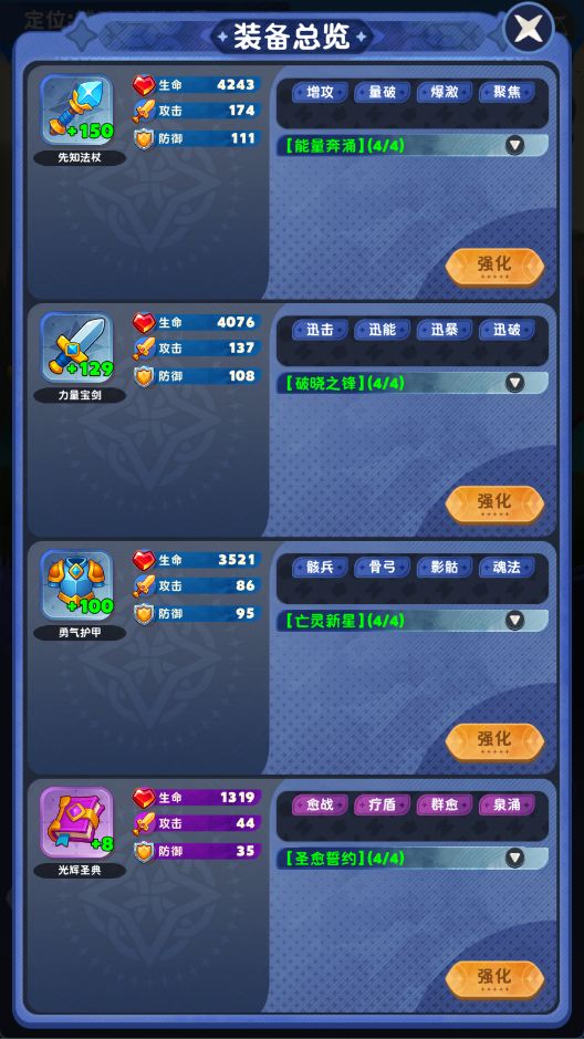 9、280关开始开始降速,急于求成,不建议用资源宝箱开英雄升级道具,等待推关获取资源,先把武器都升级匹配的装等,符石升品任务随便选个升,总共3次升级任务。