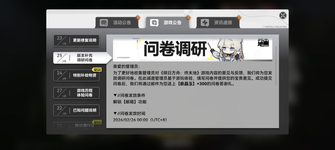 终末地再次发问卷进行调查!只问不改态度把玩家给气无语了