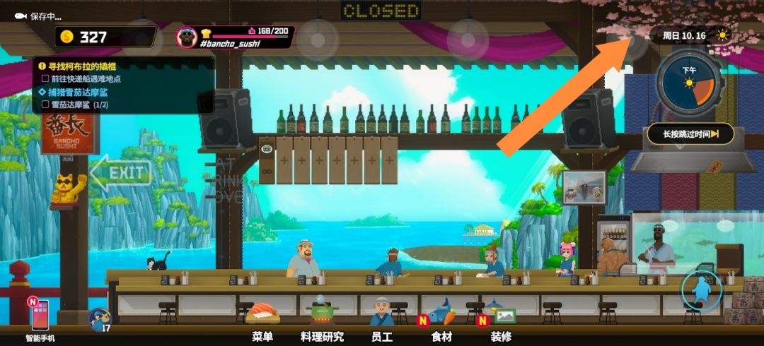 3.多抓乌贼刷材料,解锁枪械升级后直接做睡眠三旋。同时多攒海葡萄水母寿司的材料,为水母节做准备。