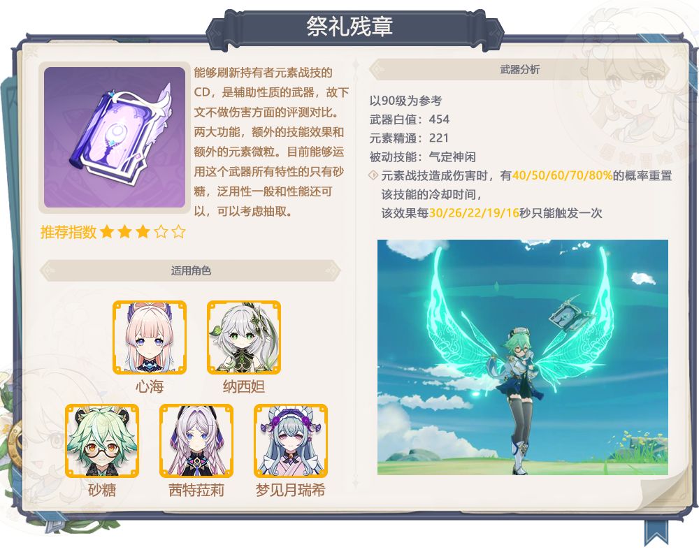这次武器池,非常适合菲林斯玩家抽取,陪跑的西风祭礼都非常不错,而且有四星最佳的下位替代武器,怎么出都是赚的。