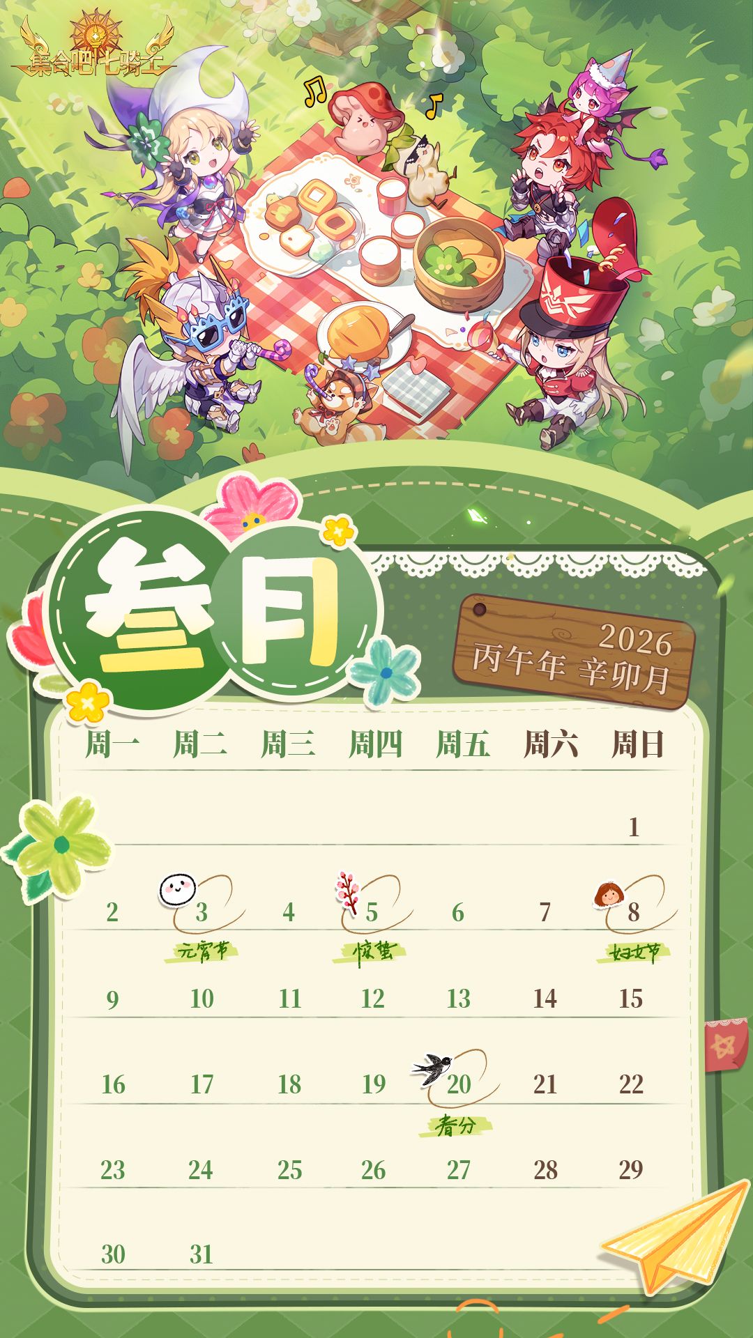 【集合吧七骑士】2026年3月主题月历