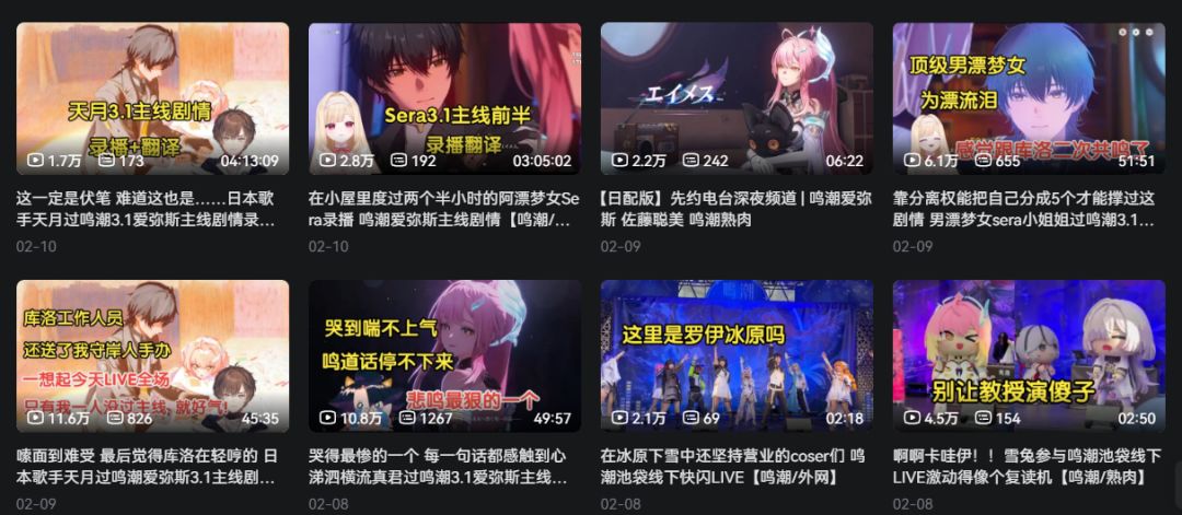 所以很多人都说B站有三大流量密码:《凡人修仙传》《新三国》吐槽,还有《鸣潮》。但问题还是那个问题——番剧和系列视频都会完结,爆款内容是可遇不可求的,都看完了看什么?