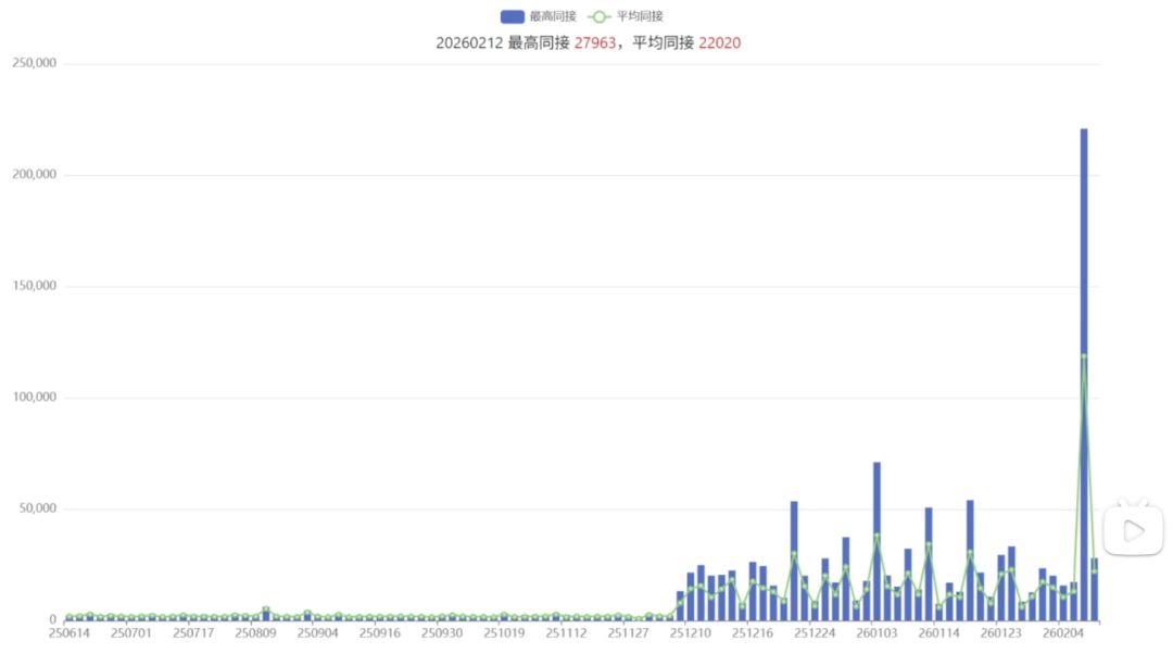 这里给不了解“同接”这个概念的朋友解释下:同接指同时接入,代指直播间里有最低限度观看/互动行为的观众数量,换句话说,就是不太能掺水的人头数、实打实的热度。