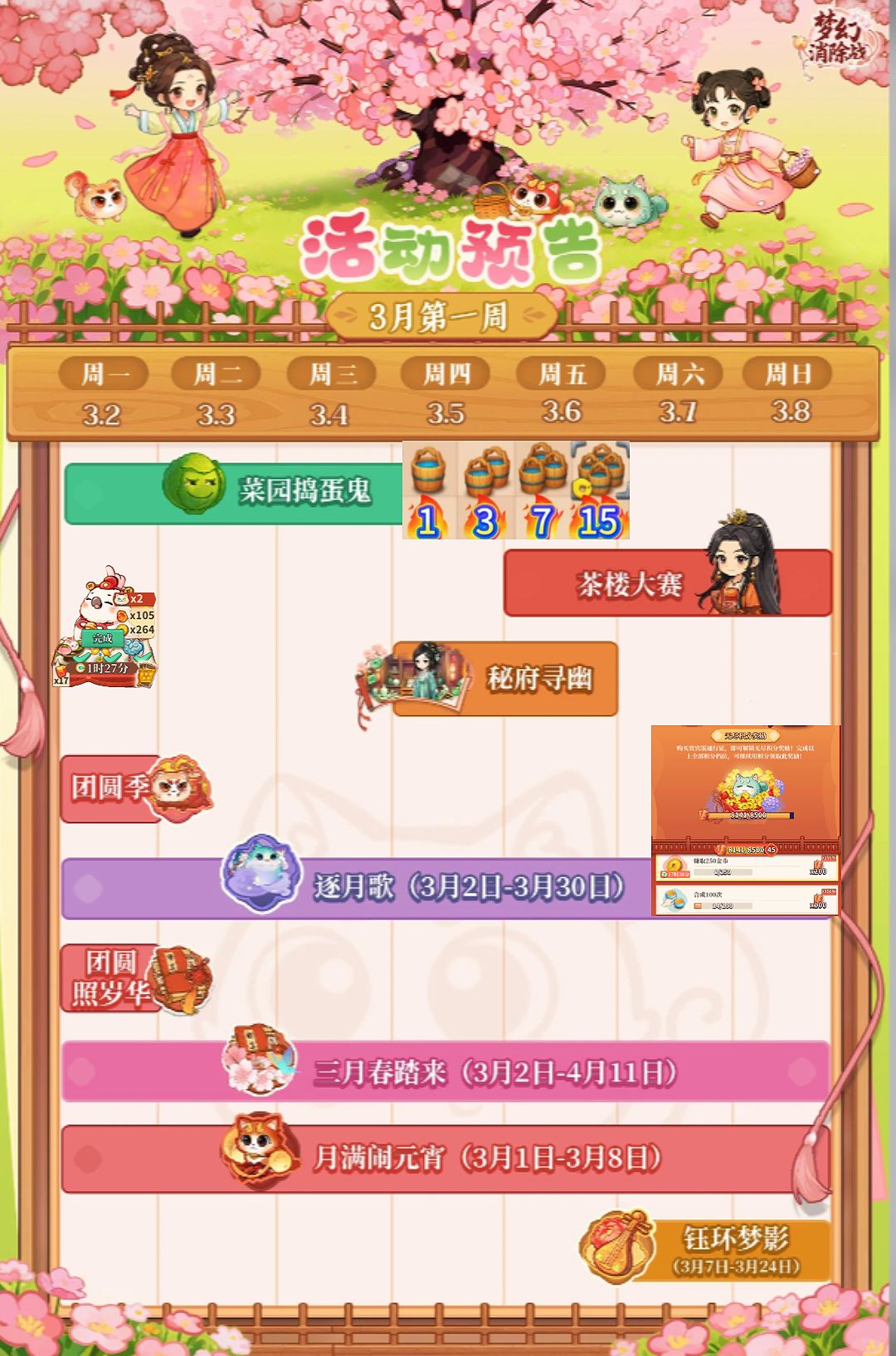 2.菜园捣蛋鬼,周一3.2晚上6点开始,为期3天。水桶记得合成!(看P2)