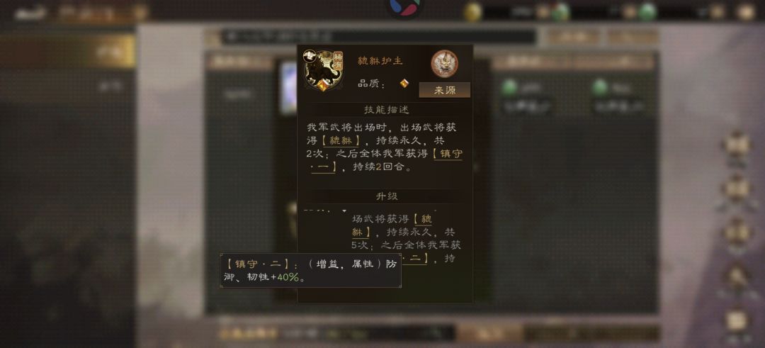 技能2,彩色为镇守二,全体防御和韧性+40%,2回合!