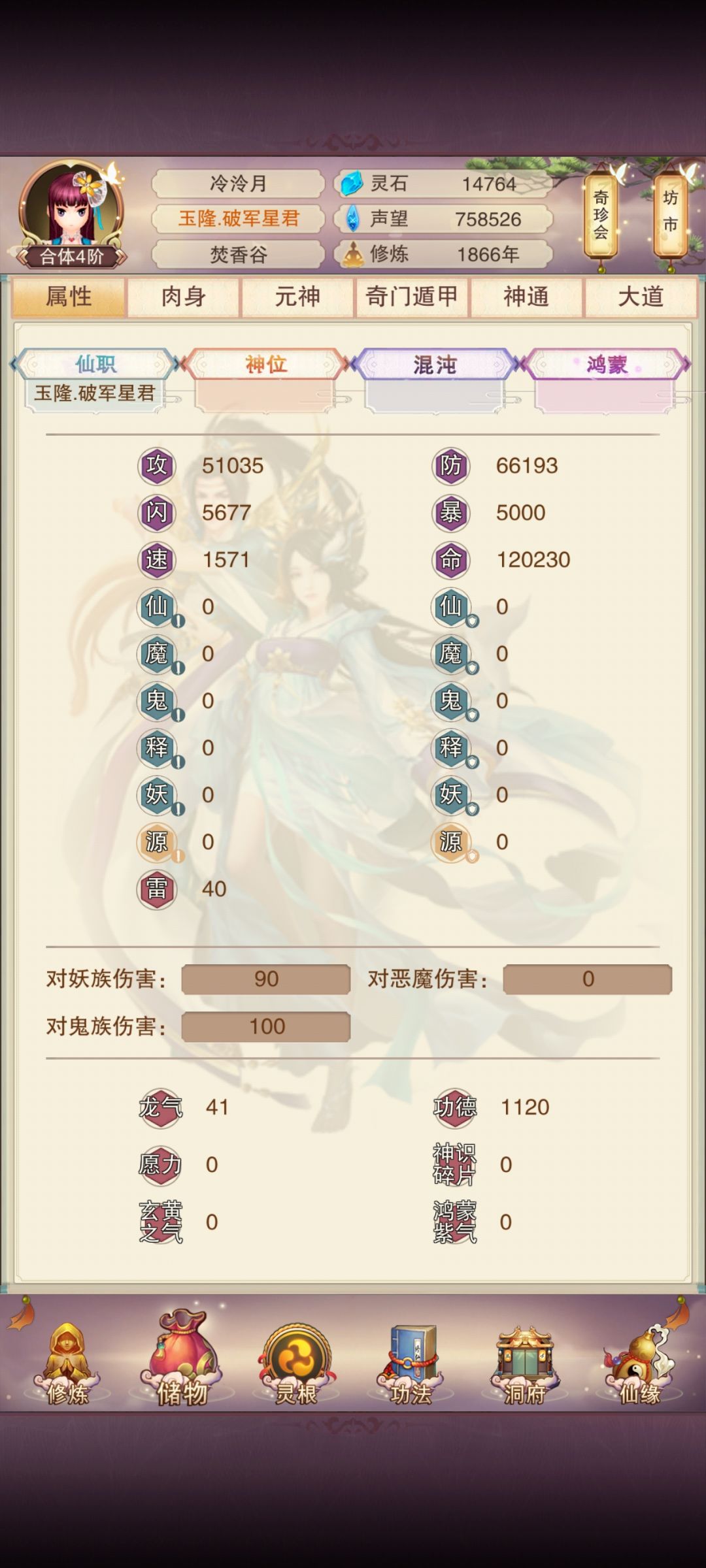 另外提一下氪月卡的三楼党大致进度,520年左右分神(卡一次掌门练功房),1350年左右合体,2850年左右洞虚(不氪的差不多合体慢半天多,洞虚慢一天半)