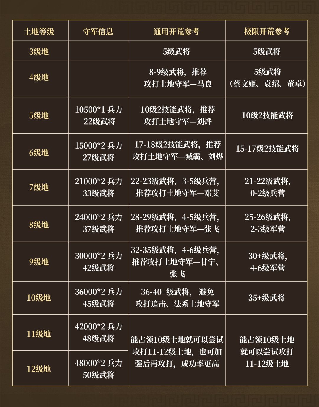 7、后续按照土地开地推荐表持续开荒即可