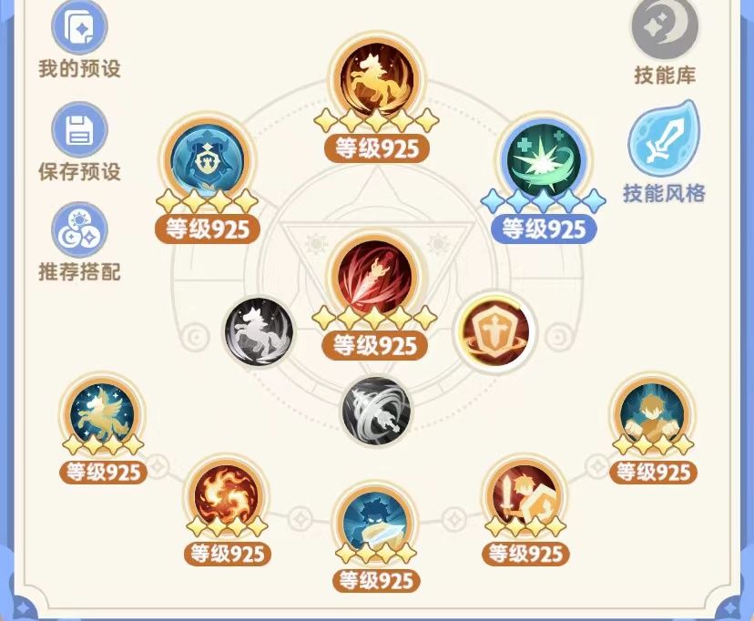 1.在需要增伤的情况下,主天赋可以带5转左线增加冷却CD 被动带T三件套后换上金4以上的被动即可。提升CD时间。