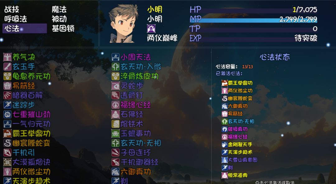 下面是装备心法配置