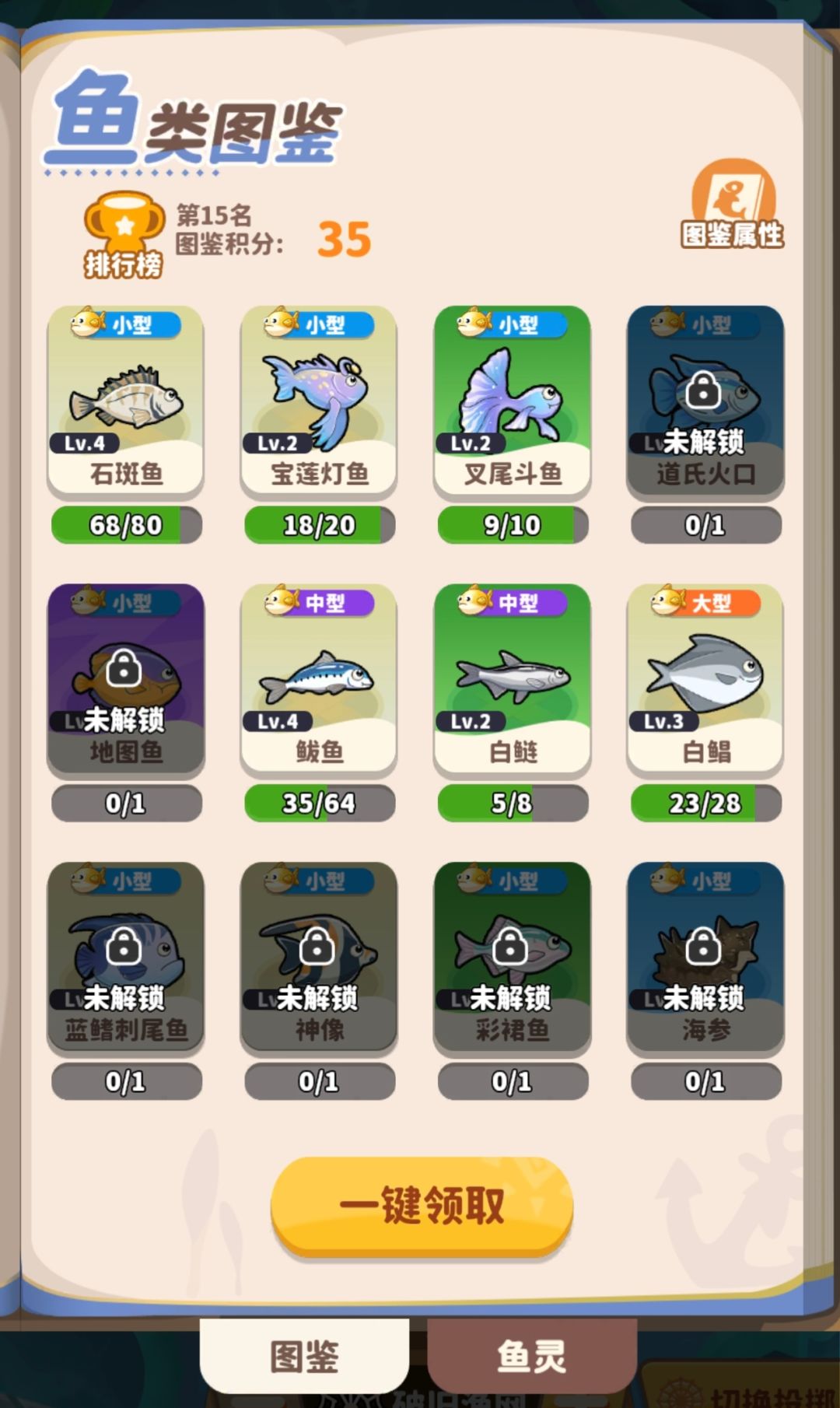 当你捕获鱼类时,可以激活或升级图鉴中的鱼灵!