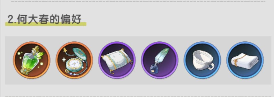 好感偏好:表睡笔香杯(高实用)