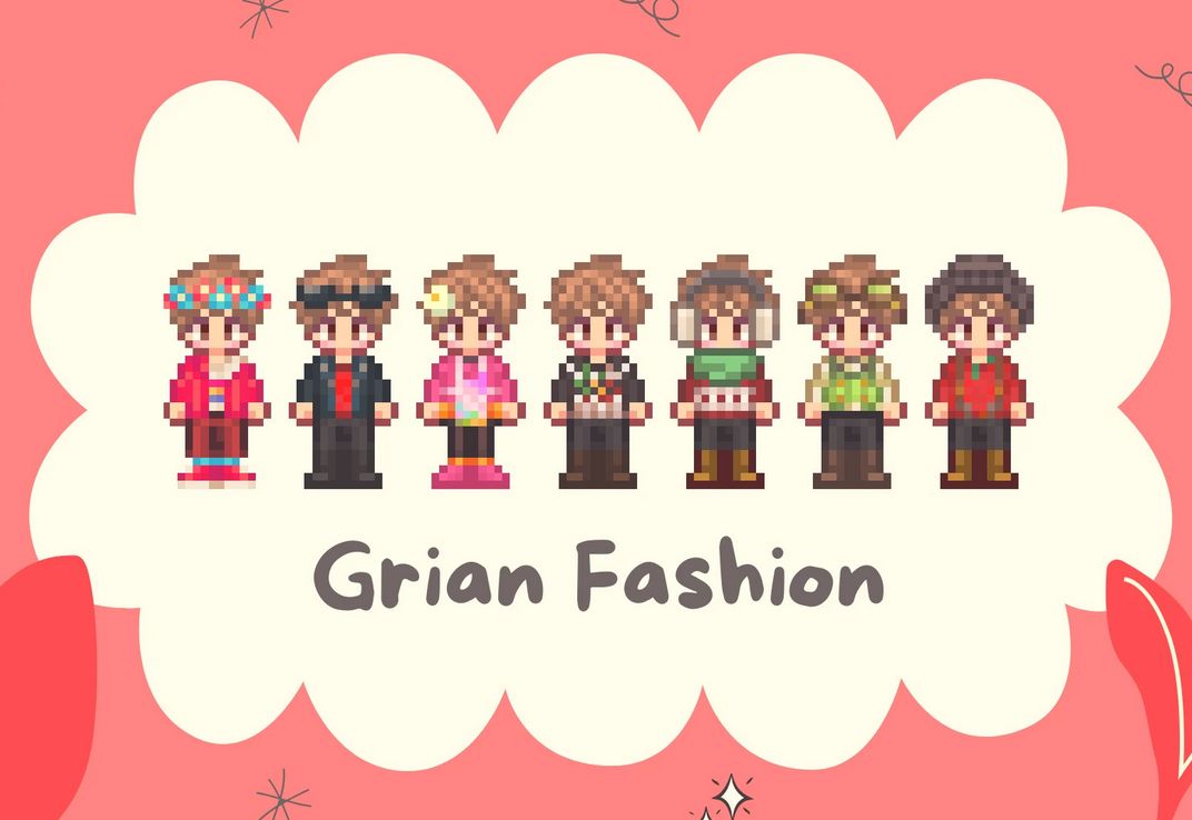 以Grian的Minecraft皮肤为设计灵感,包含5顶帽子、7件上衣、2双鞋。