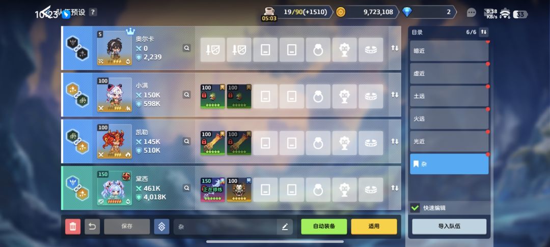 由于贝斯和银河泛用广强度高,所以必须优先练,那以此二人为主的暗近队和虚队就来了,这两队伍又能打会战还能推资源本,性价比直接拉满。