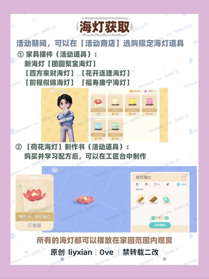 活动期间,可以在【活动商店】购买6款活动限定海灯(图2)。