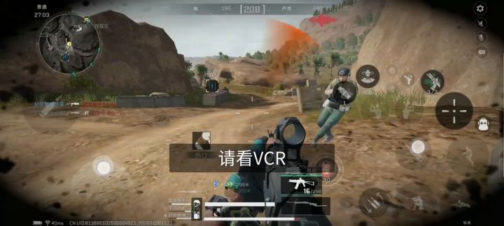 38米外锁定目标 → 举枪开火,弹药从16发干到10发;