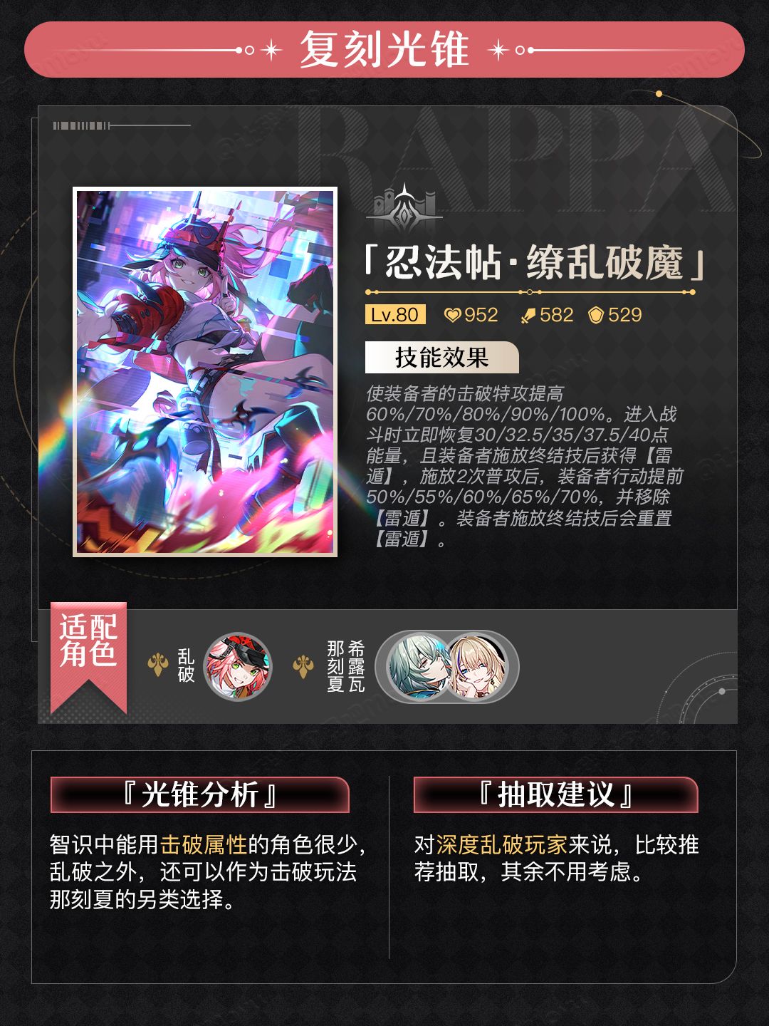 不过先来康康复刻的3位角色要不要抽吧——『刻律德菈&乱破&花火』的抽取建议
