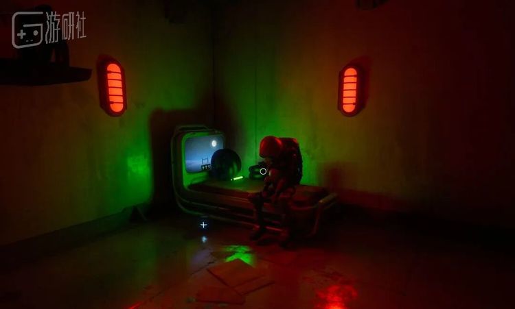 随着老旧的电子荧幕显示加载结束,幽暗的房间出现在我们眼前。目光所及的空间里,只有几个微弱的红色信号灯,光线不足的情况下找路有点困难,还好自带的头灯可以提供有限的光源。