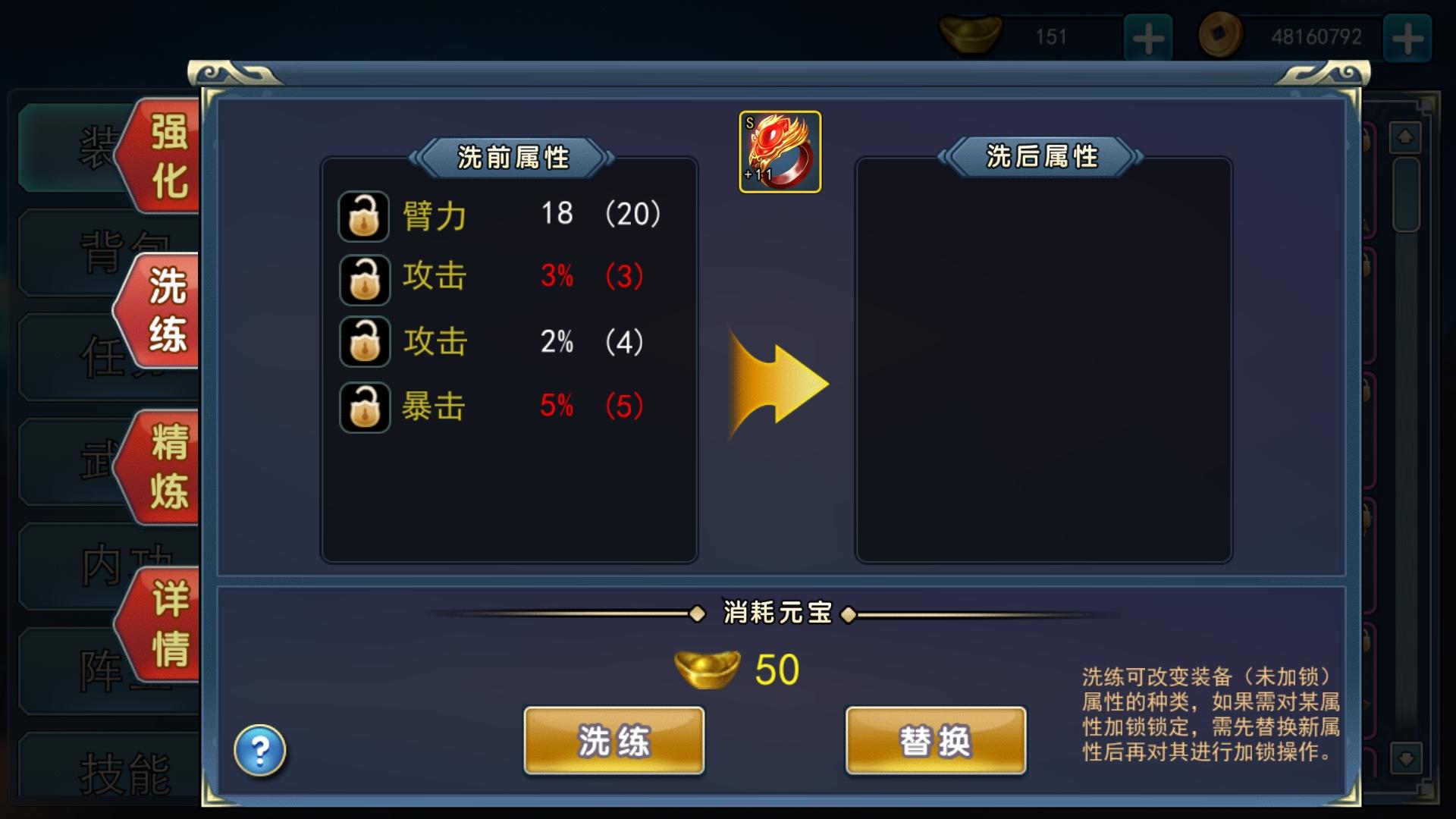 就这个戒指,最后一条攻击,洗了4000元宝了,还特么洗不出来,艹,老楚***
