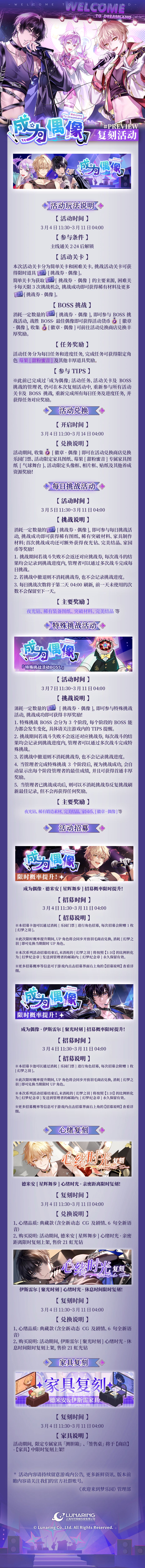 「成为偶像」复刻活动将于3月4日开启,点击下方长图,即可查看详情一览↓↓↓