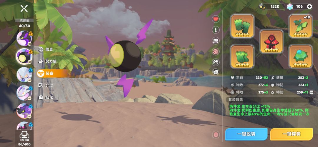 简要解释:老鹰和电偶打乖张套增加物攻的效果,提升老鹰伤害,电偶和斗龙可以打水电麻痹,远古草主和斗龙可以打寄生