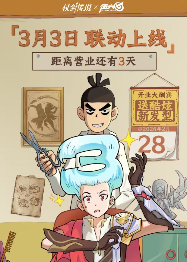 《杖剑传说》今日正式宣布,与国漫《伍六七》的跨界联动即将开启,目前已进入倒计时3天,重磅福利与限定内容同步曝光,引发玩家期待。