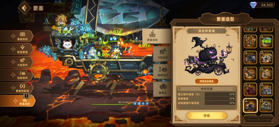 要塞会自动向前推进,炮台齐射、技能爆发、怪物群冲锋,画面其实蛮热闹的。