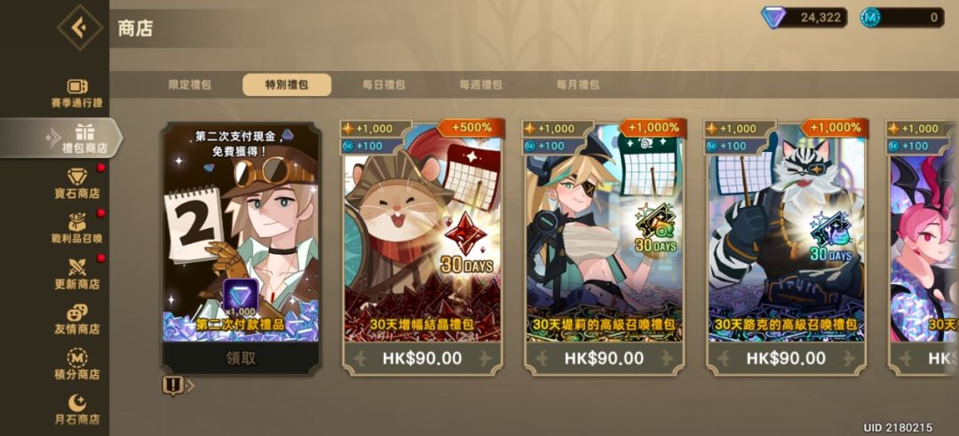 重度氪金:毕竟这是单纯堆数值游戏,战力都是直接通过字母标记法去体现,商店有各种限定礼包、每日礼包、每周礼包、每月礼包,每一次氪金都能在战力提升获得满足感。