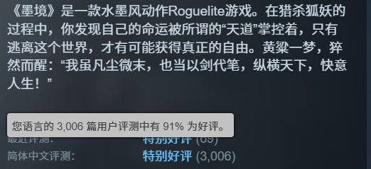 相信这两款游戏大家都不陌生,毕竟在steam上面都是特别好评的存在:《墨境》91%,《苍翼:混沌效应》94%。