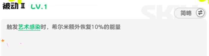 而在被动2的加持下,每触发“艺术感染”,希尔米就会额外恢复10%的能量,得以更频繁地施放大招。