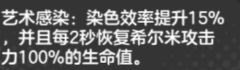 当建筑物、敌方目标被成功染色后,所有神明将获得名为“艺术感染”的增益,染色效率提升15%,且每2秒恢复希尔米攻击力100%的生命值,持续10秒。