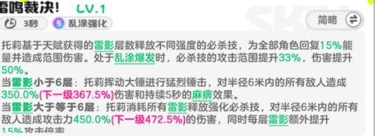同时,触发“艺术感染”后的回能,让她能以高频率施放必杀技,来给托莉的天赋充能,进而提升全队的必杀技伤害,进一步提升主C天照的爆发伤害。