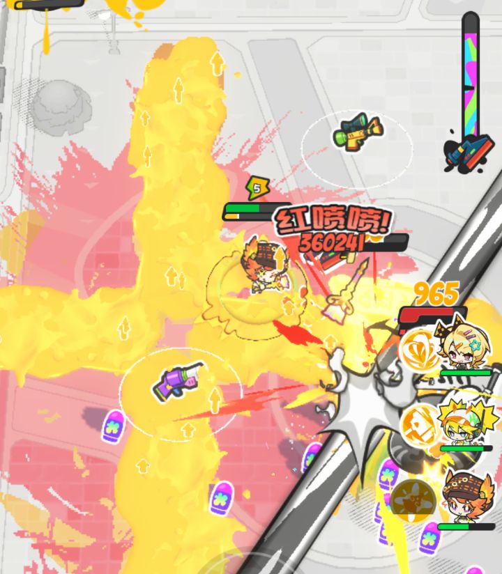 同时,击杀技的油漆波浪会在地上留下染色区域,提升处于染色区域内的角色15%的攻击速度;在被动3的加持下,该区域还将提供15%的减伤增益。
