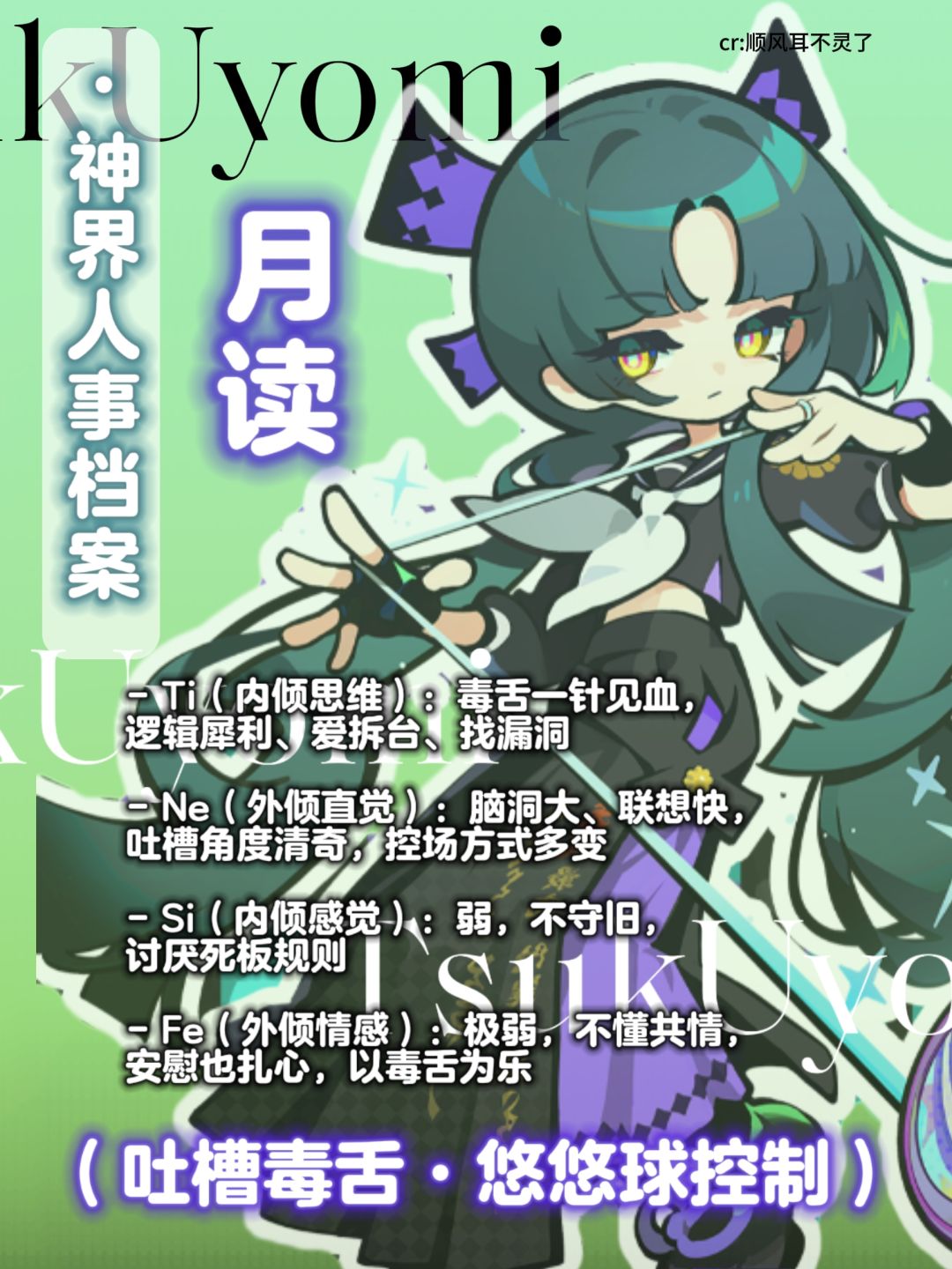 结合对MBTI的认知 对部分角色划分,娱乐向科普 每个人并不需要被人格定义.