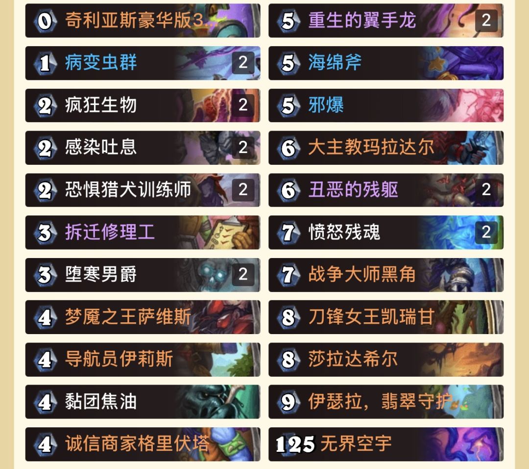 这套卡组专门用来打潜行者。然后打恶魔猎手效果都还不错。