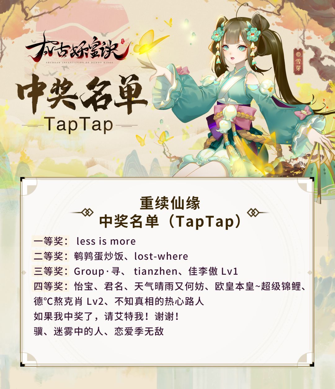 【活动喜讯】重续仙缘中奖名单公布~