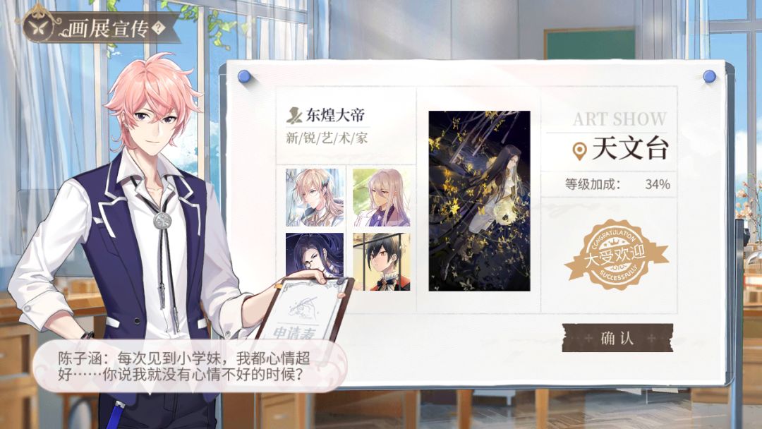 一有画展就有涵弟弟,来个声望套餐,升级了记你一个大功,狂刷你好感,哈哈