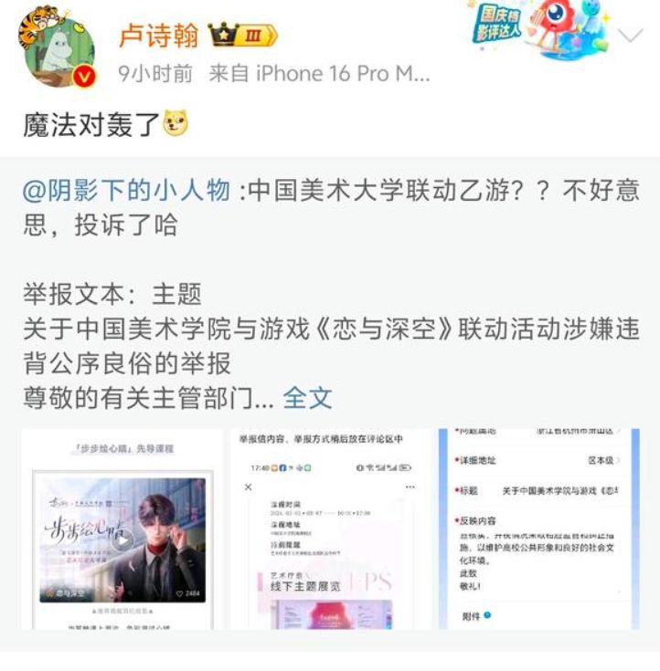 二次元手游圈再度爆发玩家魔法对轰事件,《尘白禁区》与中国邮政联动遭举报叫停后,不满的玩家随即发起反击,举报乙游《恋与深空》与中国美院的联动活动,引发圈内广泛热议。